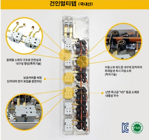 건인-화재예방자동소화멀티탭 (2구), (4구), (6구) 개별절전스위치