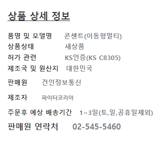 | 제품 문의처 | 02-545-5460 | 제품 기본사양 | |