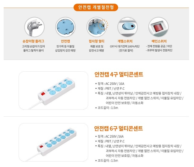 | 제품명 * | 건인-화재예방자동소화멀티탭 (2구), (4구), (6구) 개별절전스위치 | ||